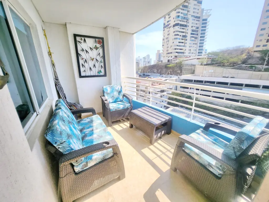 El apartamento esta frente a la playa, tiene una farmacia al pie del edificio y el supermercado grande Olímpica en la esquina. También el Centro Comercial Arrecifes se encuentra a menos de 2 cuadras del apartamento